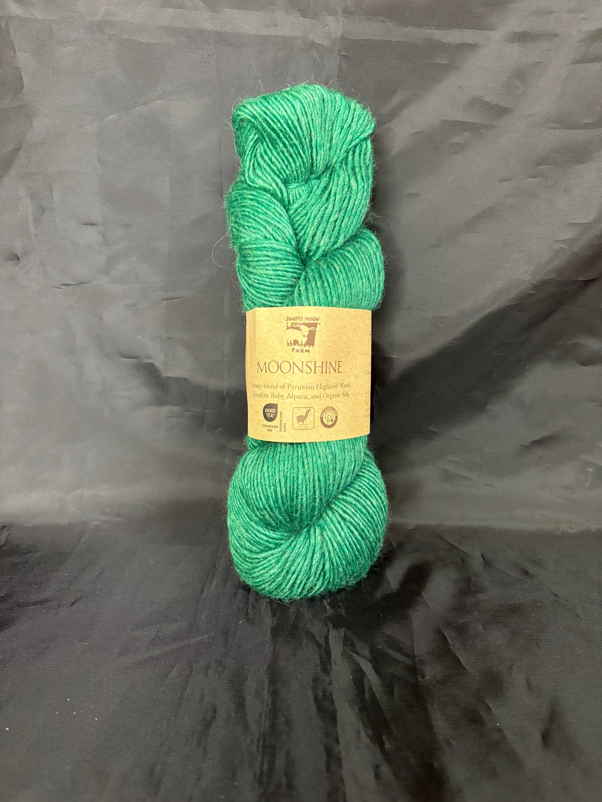 Moonshine lives up to its name! The (20%) organic silk content makes the colors glow, while the (40%) highland peruvian wool and (40%) extrafine baby alpaca are a buttery soft combination. Whether knitting or crocheting simple mitts or elaborate sweaters, you'll be reaching for Moonshine again and again.